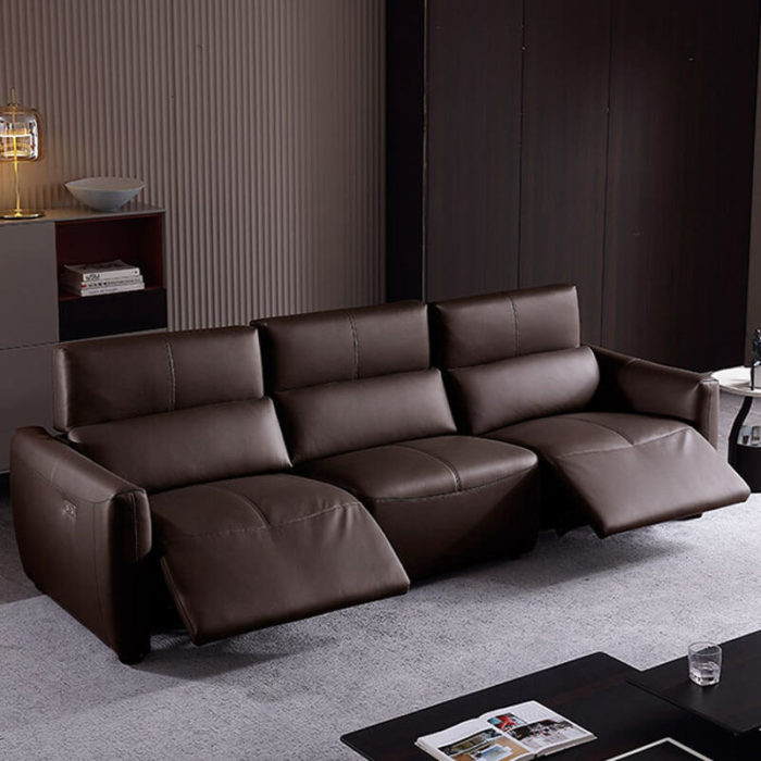 - Recliner sofa with comfortable sitting cushions and tufted sofa back.